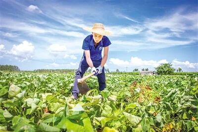 ▲叶俊辉在番薯地里劳作