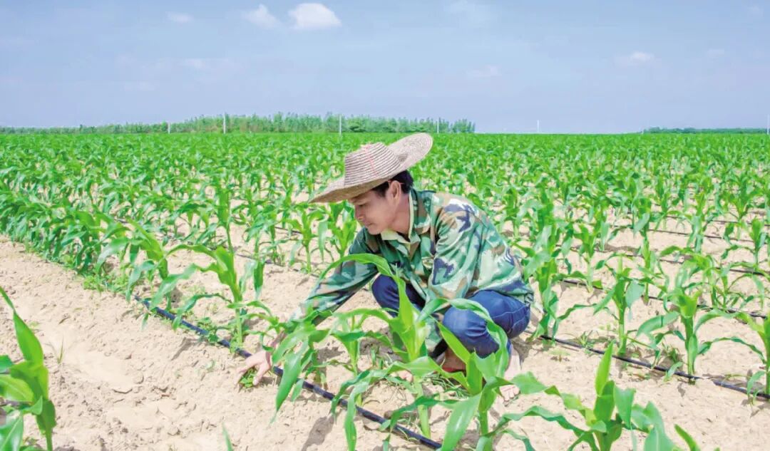 农户在给玉米苗清理杂草